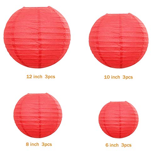 Sonnis - Lanterna rotonda a soffitto in carta rossa, 12 pezzi, per decorazione della casa, matrimonio, casa, feste all'aperto, Natale