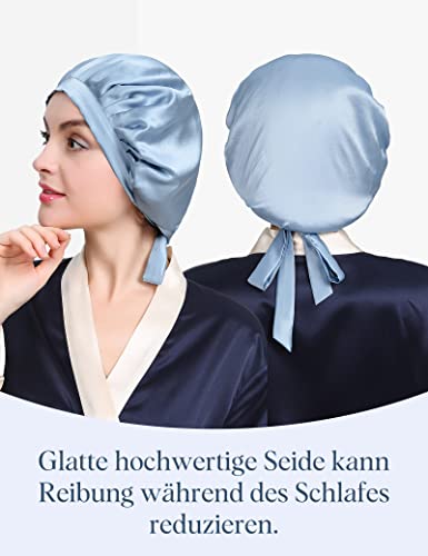 Lily Silk seta sonno berretto notte copricapo con la classica e comoda forma blu azzurro
