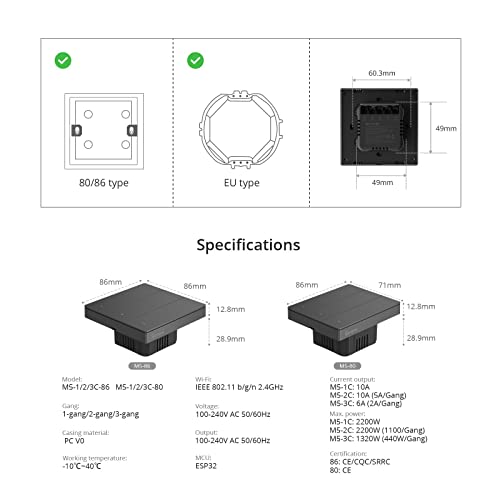 SONOFF SwitchMan Smart Wall Switch M5-3C-80, High-precision physical button, Bluetooth fast pairing, timer on, sunset off, Alexa, Google Home compatible (3-way)