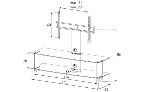 SONOROUS PL2000 TG - Mobile per TV, con 2 ripiani e 140 cms ancho. Vetro trasparente. Telaio: Grigio.
