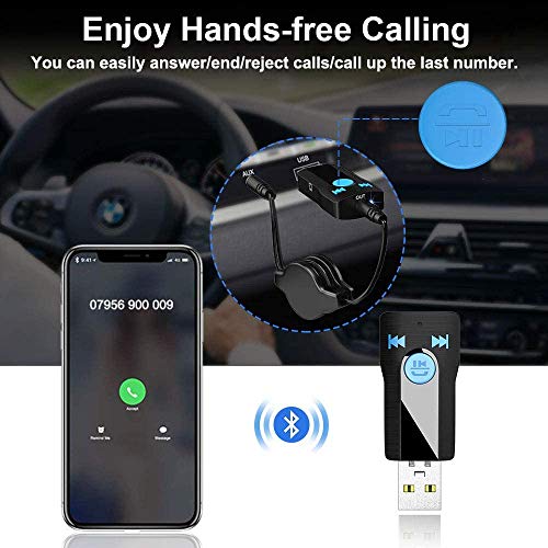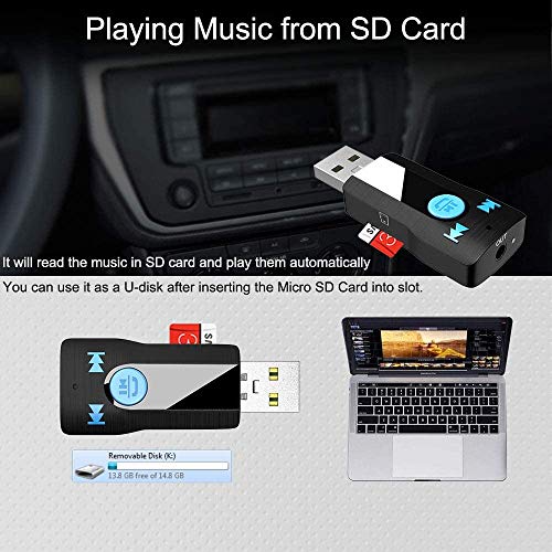 SONRU, Ricevitore Bluetooth USB per Auto, Kit Vivavoce per Lettore di schede TF, A2DP, Dual Link, Uscita AUX da 3,5 mm, Ricevitore Audio Wireless Bluetooth per Auto e casa