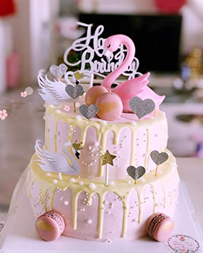 Sonsmer - Topper per torta a forma di fenicottero rosa, 2 pezzi, per fai da te, primo compleanno, cupcake, festa alternativa, decorazione di torte fatte a mano