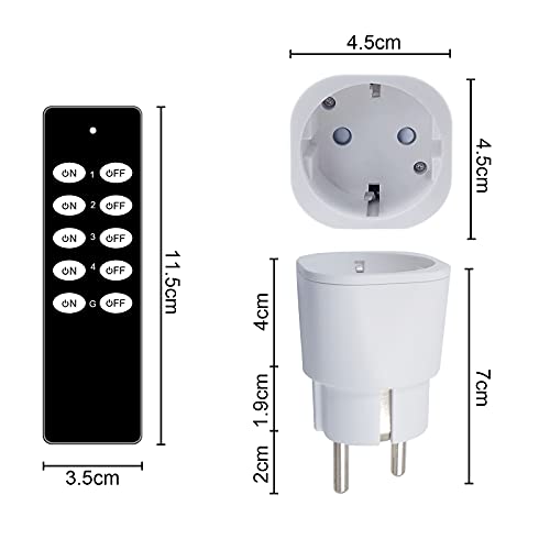 Sonsonai Presa radio con telecomando, 5 prese e 2 telecomandi, portata 70 m, presa radio 2300 W, programmabile