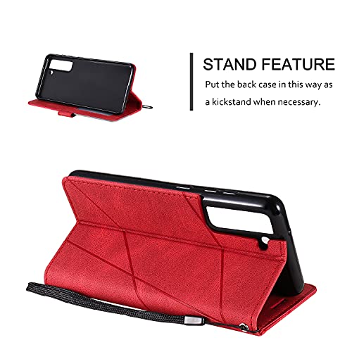 SONWO Cover per Galaxy S21 Fe, Flip Caso in PU Pelle Case Cover Portafoglio Custodia per Galaxy S21 Fe, [Kickstand] [Slot per Schede], Rosso