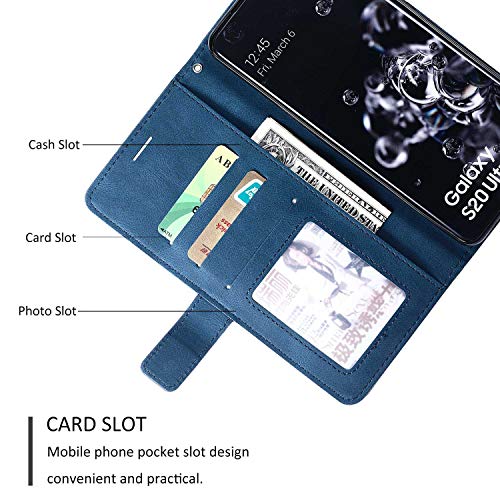SONWO Cover per Galaxy S20 Ultra, Flip Caso in PU Pelle Case Cover Portafoglio Custodia per Samsung Galaxy S20 Ultra, [Kickstand] [Slot per Schede], Blu