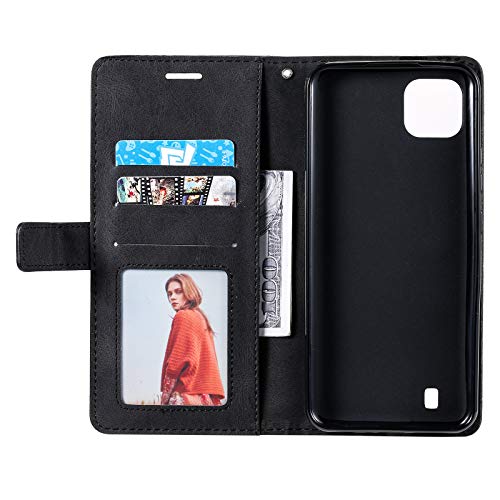 SONWO Cover per Oppo Realme C20 / Realme C11 2021, Flip Caso in PU Pelle Case Cover Portafoglio Custodia per Oppo Realme C20 / Realme C11 2021, [Kickstand] [Slot per Schede], Nero
