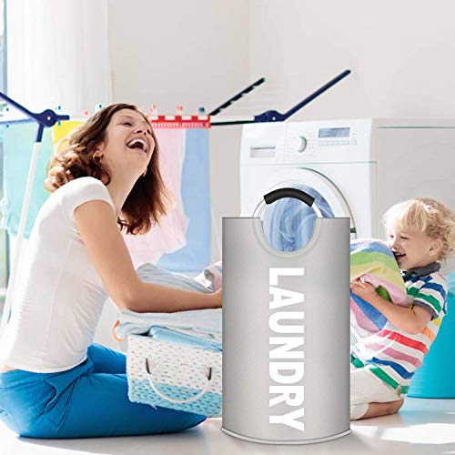 Sooair Cesta Portabiancheria, Cesto Portabiancheria Grande, Cesto Panni Sporchi, Cesto Portabiancheria, Cesto Biancheria Pieghevole con Manici in Alluminio, 72x38cm/28x15 Inches (Grigio)