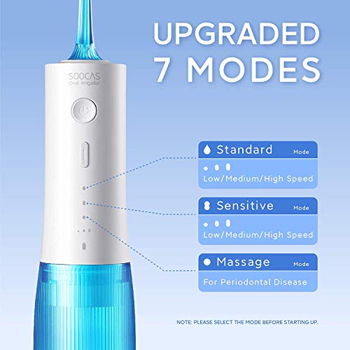 Soocas Idropulsore Denti senza fili Irrigatore orale 240ML Idropulsore dentale ad acqua portatile e ricaricabile con 7 modalità e 4 punte a getto IPX7 Impermeabile 80 giorni Usa, Blu