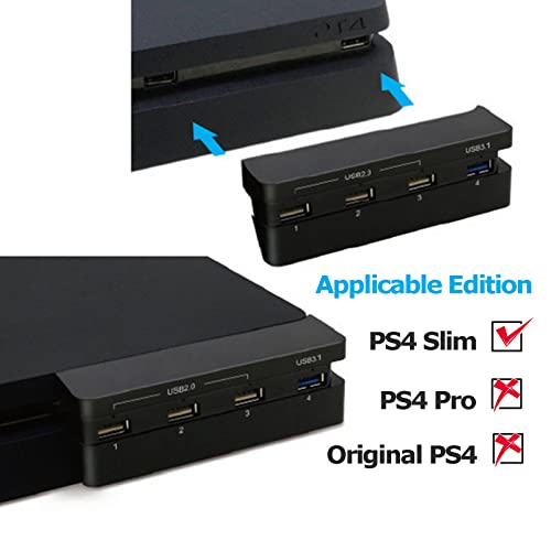 Hub USB a 4 porte: l'hub USB consente di utilizzare o caricare fino a 4 accessori USB contemporaneamente. Appositamente progettato e perfettamente adatto per la console di gioco PS4 Slim.