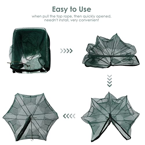 ✌ COMODO DA UTILIZZARE: trappola per rete da pesca con 6 ingressi e progettata a 360 gradi, speciale design pieghevole con cerniera unilaterale per estrarre facilmente la preda. devi solo tirare la corda superiore, quindi la rete si aprirà rapidamente, non è necessario installare, molto conveniente.