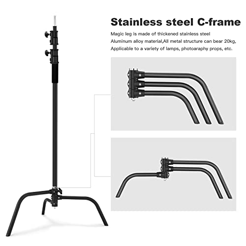 【Robusto, durevole e confortevole】Il cavalletto a C in acciaio inossidabile al 100%, realizzato in lega di alluminio in acciaio inossidabile ispessito e ispessito, la struttura interamente in metallo può contenere fino a 20KG.Anti corrosione e anti caduta.Dotato di manico in spugna, sicuro e antiscivolo, resistente al sudore e al freddo.Molla incorporata per una migliore protezione della luce.