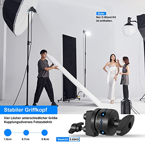 Soonpho Cavalletto C Stand,330 m Regolabile Supporto Luce, Con Asta Di Prolunga Da 130cm,2 Teste di Presa & Borsa per Fotografia in Studio Riflettore Ombrello Monoluce,Softbox