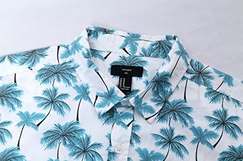 SOOPO Camicia Hawaiiana per Uomo Camicia a Maniche Corte Stampe Blu Palme, Regular Casual, Camicia Estiva Carina e Comoda, L