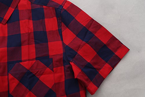 SOOPO Camicia Western da Uomo a Maniche Corte Scozzese a Maniche Corte con Bottoni, Rosso e Blu, m