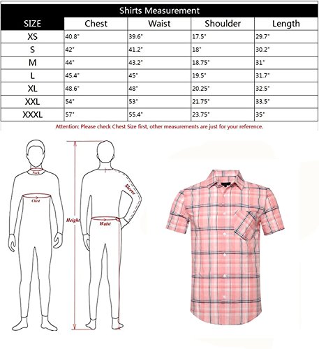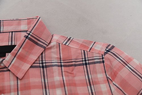 SOOPO Camicie da uomo casual a maniche corte con bottoni a quadri, B-rosa, M