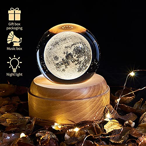 [Sfera di cristallo 3D] - Diametro della sfera di cristallo: 2,7 pollici (7 cm), questo significa che puoi tenere la palla in mano. Il cristallo con la base in legno ruoterà quando la musica è accesa, offrendoti unesperienza visiva eccellente.