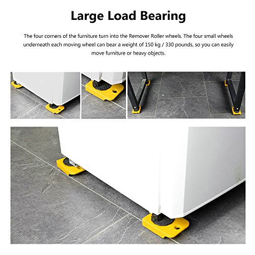 ✔️ Grande capacità di carico: i quattro angoli del mobile si trasformano nelle ruote del rullo di rimozione. Le quattro piccole ruote sotto ogni ruota mobile possono sopportare un peso di 150 kg / 330 libbre, quindi puoi spostare facilmente mobili o oggetti pesanti.