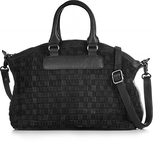PHIL+SOPHIE, Cntmp, Borsa da Donna, Borsa a Mano, Con Manici, Borsa Bowling, In Pelle Scamosciata, Con Tasca in Pelle, In Pelle / con Goffratura, 36x25x14cm (L x H x P)