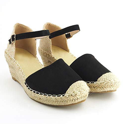 Sopily Scarpa Moda Espadrille Sandalo Elastico Piattaforma Altezza Caviglia Donna Corda Tacco Zeppe Piattaforma 7,5 cm - Bianco e Nero