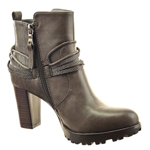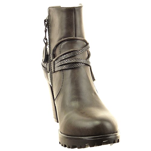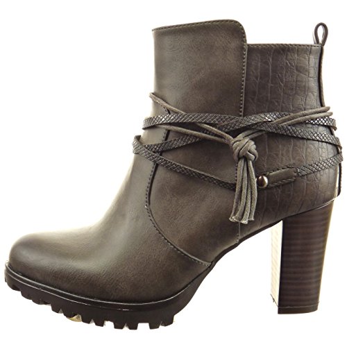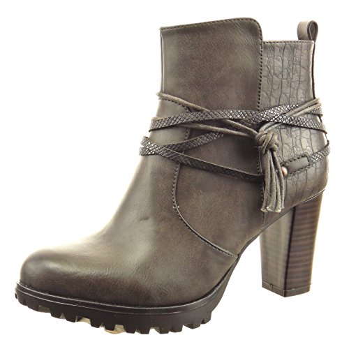 Sopily - Scarpe da Moda Stivaletti - Scarponcini Low Boots Donna Pelle di Serpente Multi-Briglia Corda Tacco a Blocco Tacco Alto 8 CM - Grigio FRF-4-F193 T 38