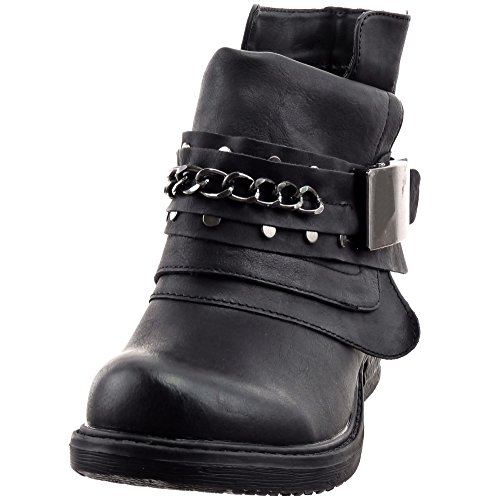 Sopily - Scarpe da Moda Stivaletti - Scarponcini Cavalier Biker alla caviglia donna Catena fibbia Tacco a blocco 3 CM - soletta sintetico - foderato di pelliccia - Nero FRF-3309-2 T 40 - UK 7