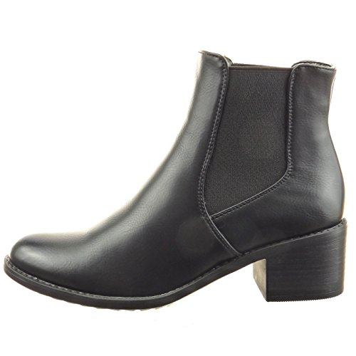 Sopily - Scarpe da Moda Stivaletti - Scarponcini Chelsea Boots alla Caviglia Donna Tacco a Blocco Tacco Alto 5 CM - Soletta Foderato di Pelliccia - Nero CAT-3-BS004 T 40