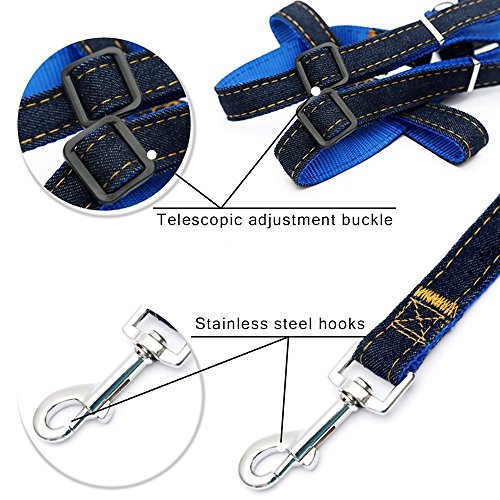 Sopito Cablaggio dell'animale Domestico, Jean Cane Conduce No-Pull guinzaglio del Cane/Gatto con Fibbie a sgancio rapido di Sicurezza del Cane Cablaggio Cowboy Cinghia Corda Catena - Blu (XS)