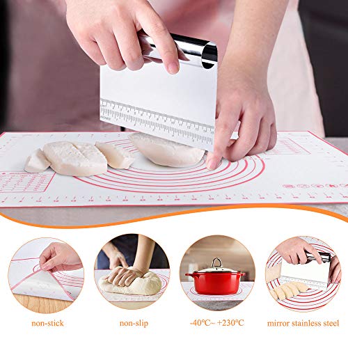 Sopito Set di pennelli da Pasticceria, 3 Pezzi Pennelli per Olio in setola di Cinghiale per cuocere con Raschietto da banco in Acciaio Inossidabile e Tappetino per Pasticceria in Silicone