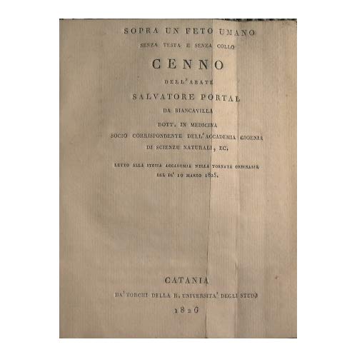 Sopra un feto umano senza testa e senza collo cenno dell'Abate Salvatore Portal da Biancavilla ... socio Corrispondente dell'Accademia Gioienia.... [Rilegatura flessibile] Portal Salvatore and Una incisione raffigurante il feto [Rilegatura flessibile] Portal Salvatore and Una incisione raffigurante il feto [Rilegatura flessibile] Portal Salvatore and Una incisione raffigurante il feto [Rilegatura flessibile] Portal Salvatore and Una incisione raffigurante il feto [Rilegatura flessibile] Portal Salva
