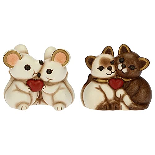 THUN - Soprammobile Coppia di Topini con Cuore & Coppia di Gattini con Cuore - Bomboniere - Linea Cerimonia - Formato Mini - Ceramica