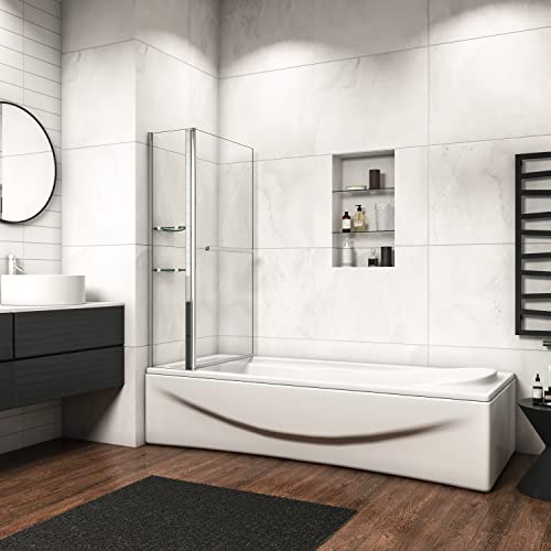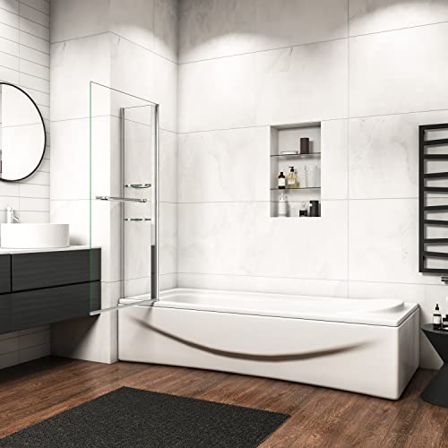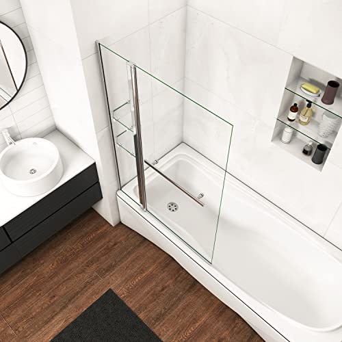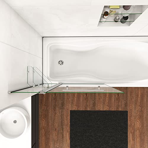 Sopravasca da Bagno Doccia Girevole con 2 Ripiani 120x140 cm Vetro Temperato Trasparente 6 mm Maniglia Portasciugamani Cromo