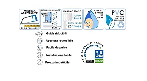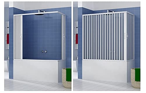 Sopravasca Box Vasca in PVC 2 lati 70 x 140 cm H 150 cm mod. GALATEA, Bianco, box doccia con apertura centrale angolare due ante a soffietto, reversibile, riducibile