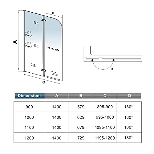 Parete Vasca da 90 cm (regolabile da 895 a 900 mm) alta 140 cm;