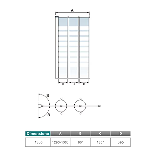140 cm Sopravasca Tre Ante Pieghevoli a Libro Verso Sinistro Vetro 4 mm Temperato Fasce Bianche Opache Telaio Argento Opaco 130 cm