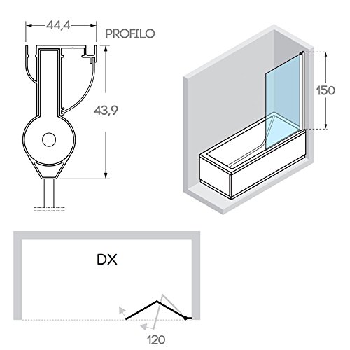 Sopravasca composto da due ante ripiegabili con apertura verso l'interno in cristallo con trattamento anticalcare e profilo in alluminio verniciato Bianco Ral 9010.
