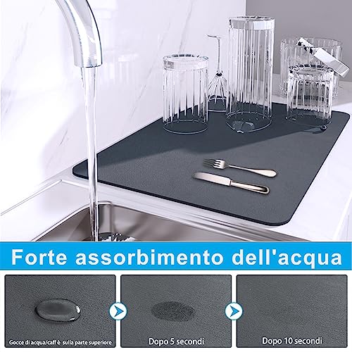 SOQKEEN Tappetino Scolapiatti, 40 × 30 cm Tappetino Assorbente Cucina, Tappetino Macchina Caffe, Tappetino Scolapiatti da Lavello Accessori Cucina, Tappetino Antiscivolo Assorbente, Grigio scuro