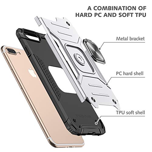Custodia compatibile con iPhone 8 Plus/iPhone 7 Plus/iPhone 6 Plus/iPhone 6S Plus con porta anello in metallo e piastra in metallo.