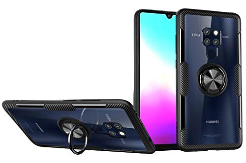 SORAKA Cover Trasparente per Huawei Mate 20 con Supporto anello,Cover trasparente Hard PC+Paraurti in silicone,con piastra metallica per Supporto Auto Smartphone Magnetico