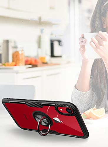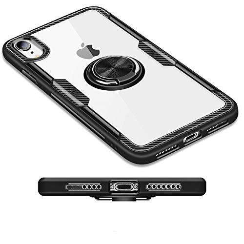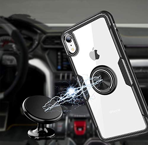 SORAKA Cover Trasparente per iPhone XR con Supporto anello,Cover trasparente Hard PC+Paraurti in silicone,con piastra metallica per Supporto Auto Smartphone Magnetico