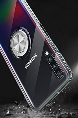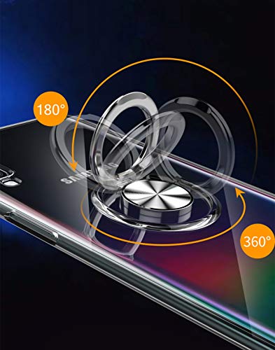 SORAKA Cover trasparente per Samsung Galaxy A7 2018 con anello rotante a 360 gradi e piastra metallica per Supporto Auto Smartphone Magnetico,Custodia in TPU trasparente Ultrasottile