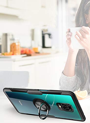 SORAKA Cover Trasparente per Xiaomi Redmi Note 9 Pro/Note 9S con Supporto anello rotante a 360 gradi Cover trasparente Hard PC+Paraurti TPU con piastra metallica per Supporto Auto Smartphone Magnetico