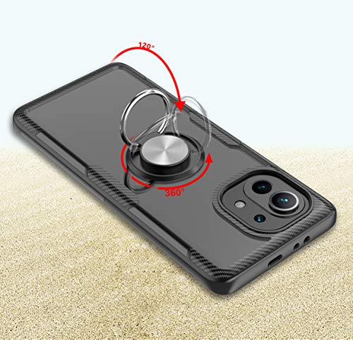 SORAKA Cover Trasparente per Xiaomi Mi 11 con Supporto anello,Cover trasparente Hard PC+Paraurti in silicone,con piastra metallica per Supporto Auto Smartphone Magnetico