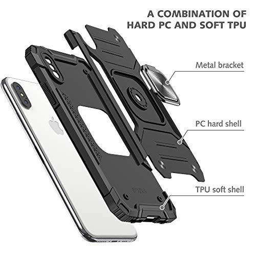 SORAKA Custodia per iPhone Xs Max con anello in metallo,Custodia morbida in silicone,Cover posteriore dura del PC,Antiurto Cover con Piastra di Metallo per Telefono Magnetico Supporto Auto