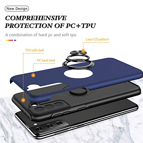 SORAKA Custodia per Samsung Galaxy S21 5G con supporto ad anello invisibile e piastra metallica per supporto magnetico per auto Custodia robusta di grado militare Custodia protettiva antiurto