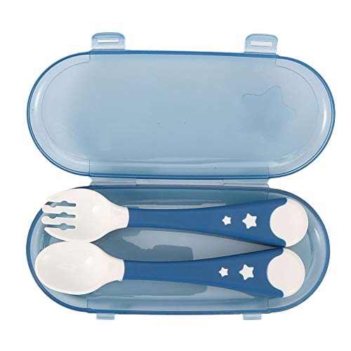 Sorand Cucchiaio per Neonati in Silicone Set di forchette, Materiale in PP Cucchiaio per Alimenti per Bambini Facile da Lavare, Portatile Confortevole apprendimento autoalimentato per(Blue)