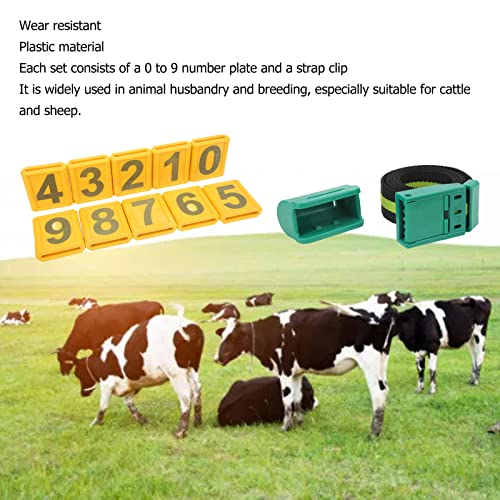 Targa: la targa del collo della mucca è realizzata in materiale PU resistente, ogni set è composto da una targa da 0 a 9 e una fibbia per cintura.