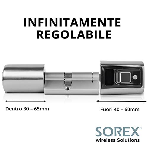 SOREX wireless Solutions Serratura Elettronica Flex con Impronta Digitale, (Variante Standard - Montaggio dall'Esterno)(Esterno 40-60 mm/Interno 30-65 mm)