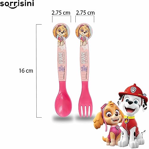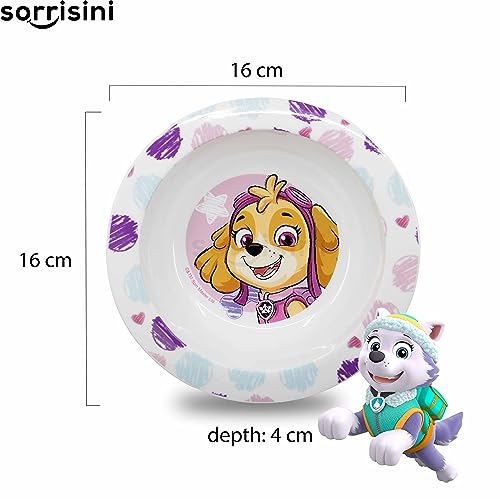 Sorrisini - Paw Patrol Set di stoviglie per bambini | Set da tavola riutilizzabile per bambini | Stoviglie con piatto, ciotola per cereali, tazza e posate | Set da colazione per bambini