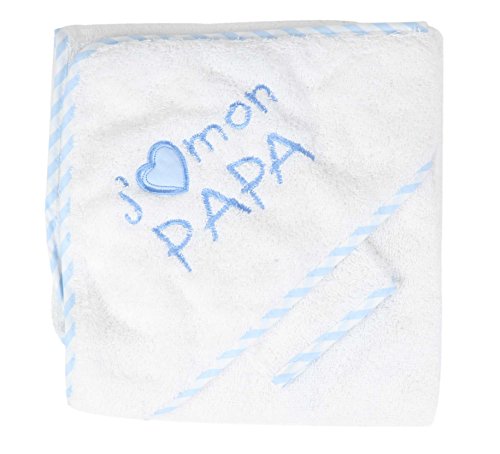 Sortie de bain "j'aime mon papa" avec gant, idée cadeau naissance (Blanc Bleu)