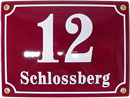 Sosenco Numero civico con nome della strada, 20 x 15 cm, in ceramica smaltata, resistente alle intemperie, personalizzabile, colore rosso